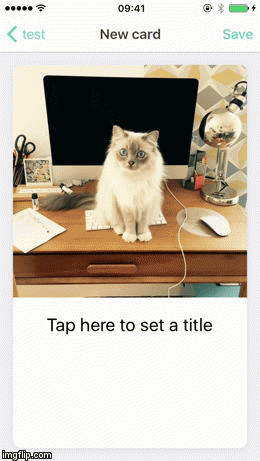 To make the card edition more natural, I wanted the card to take all the space at first, and then become scrollable when the keyboard appears. Also, I wanted the card to scroll automatically to show the field tapped by the user, like this: