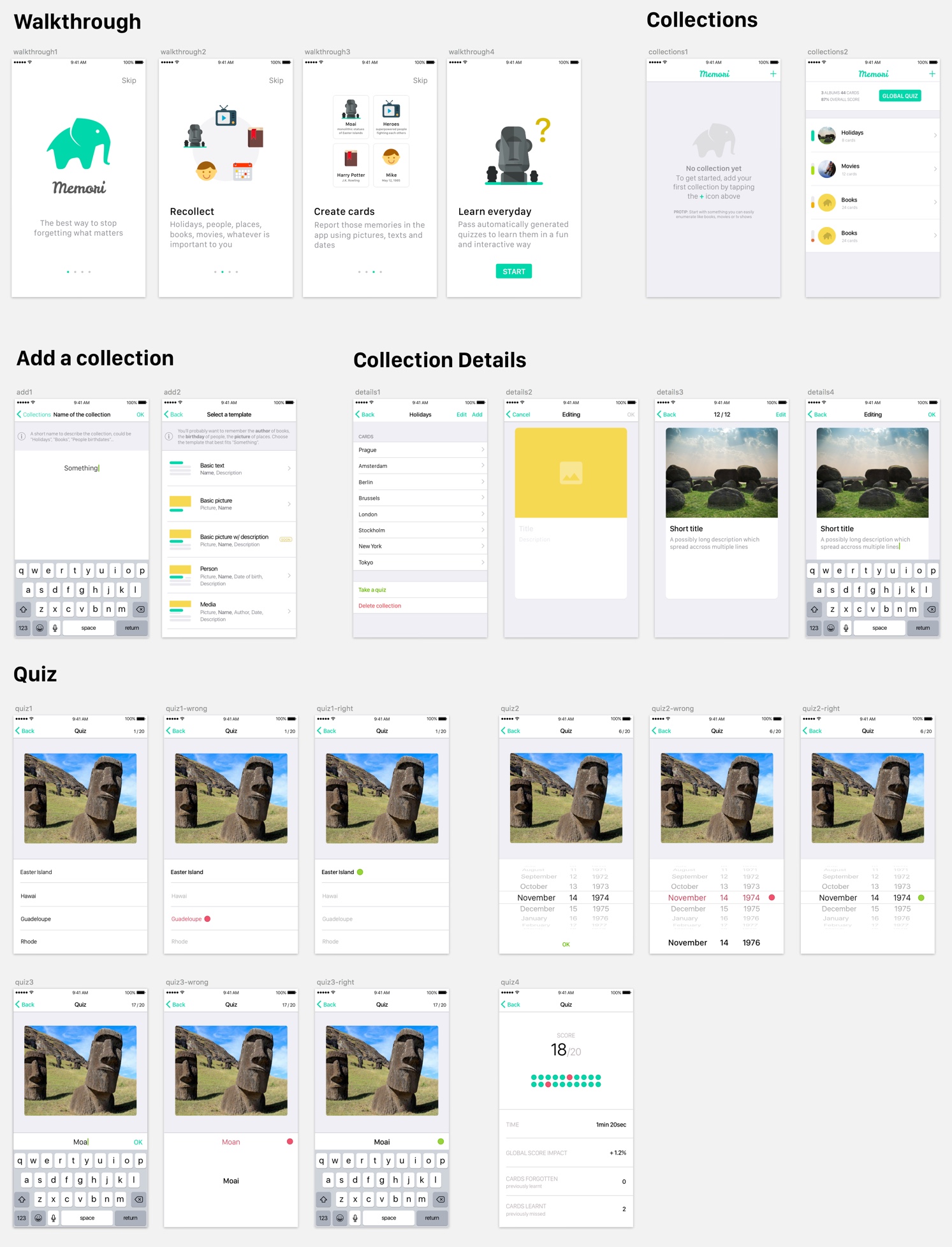 - Create cards for each memory
